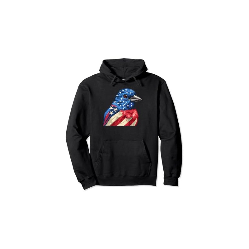 American Flag Lazuli Bunting Patriotic Bird Face 4th Of July Pullover Hoodie