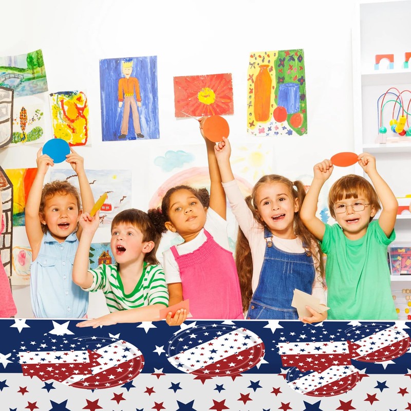 - High Material: Patriotic plates are made of food-grade paper, non-toxic and odorless, lightweight and durable. The tablecloth is 53.9×107.8 in, and made of quality plastic, not easy to tear, waterproof and stainproof.