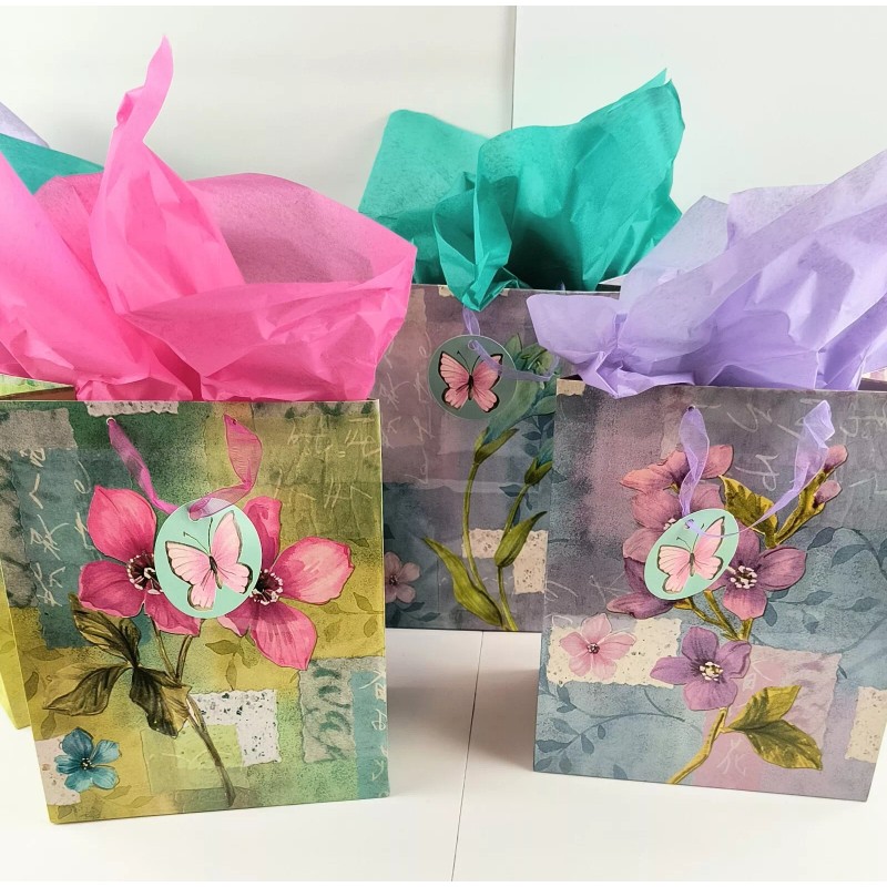 American Greetings 10" Spring Summer Floral Gift Bags w Tissue Paper 5 Pack