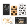 - This set of graduation cards feature classic black and gold designs including stars, graduation caps, and confetti elements