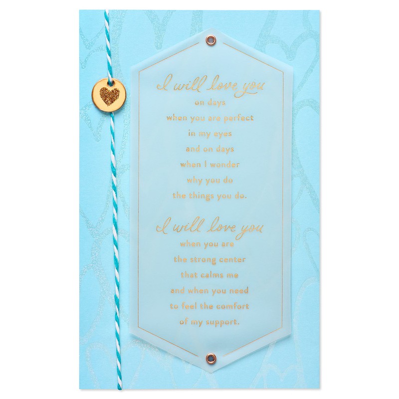 - Front Message: I will love you on days when you are perfect in my eyes and on days when I wonder why you do the things you do. I will love you when you are the strong center that calms me and when you need to feel the comfort of my support