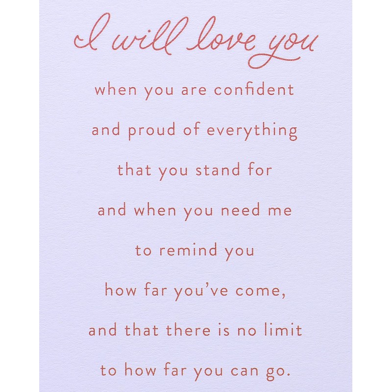 - Inside Message: I will love you when you are confident and proud of everything that you stand for and when you need me to remind you how far you've come, and that there is no limit to how far you can go.