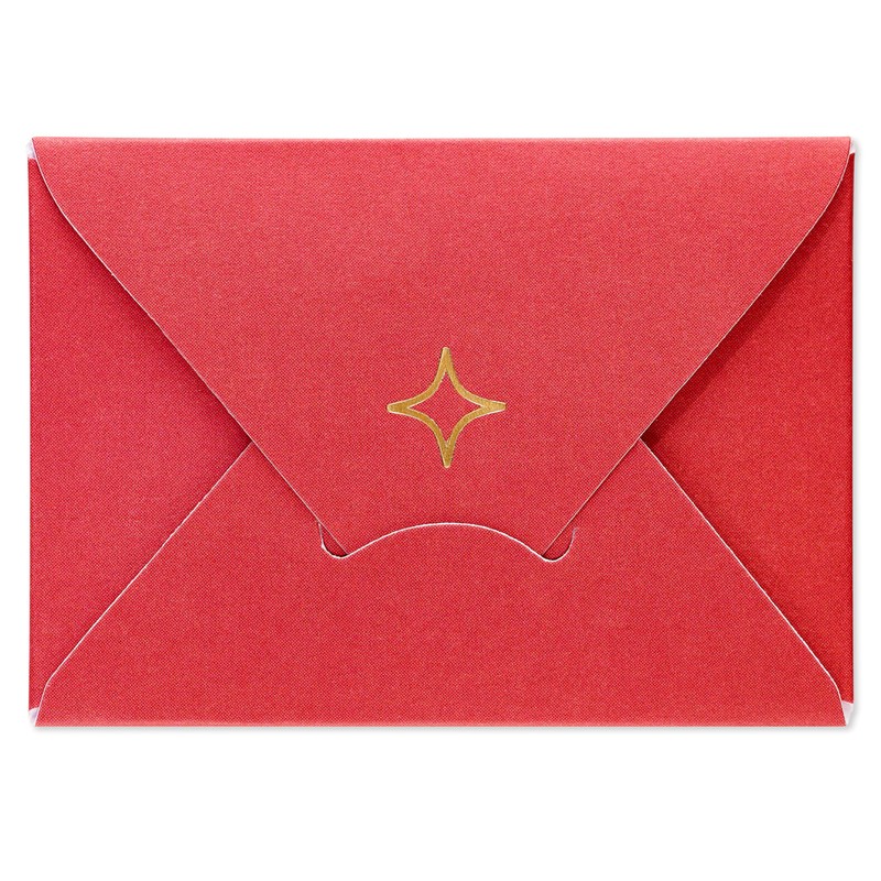 - Card measures 4.625 in. x 6.75 in. when closed and 13.5 in. x 4.625 in. x 5.5 in. when open. Red envelope and mini note included