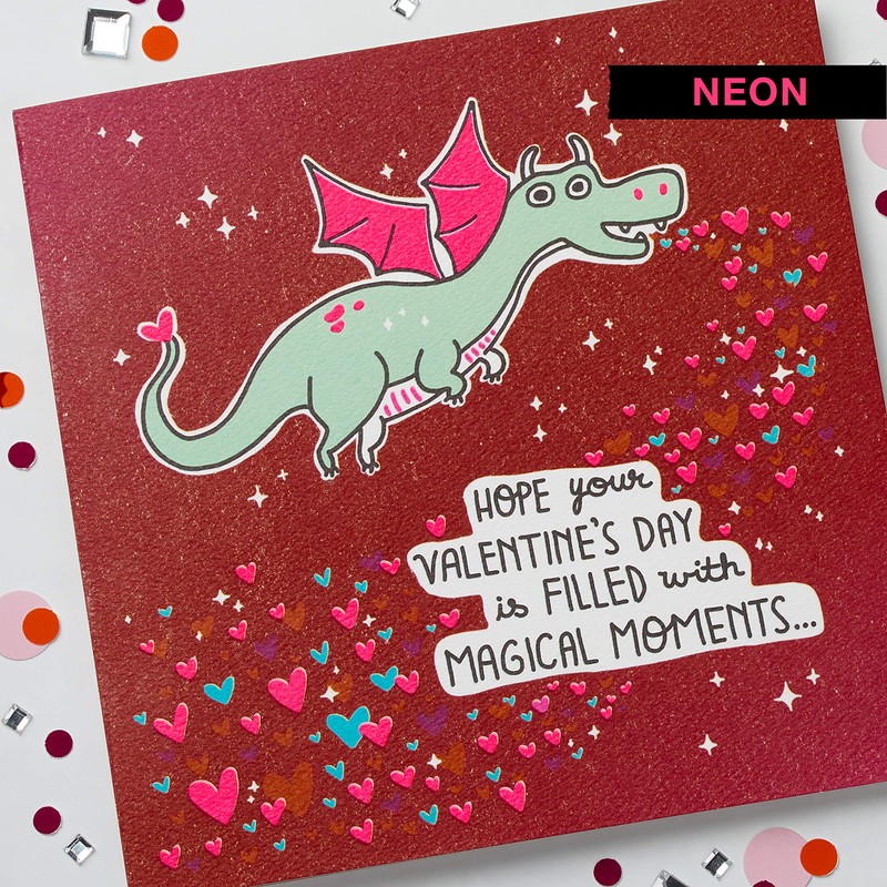 - This American Greetings Valentine’s Day card by Present Company features a cute dragon card theme with neon pink details and a warm message for anyone