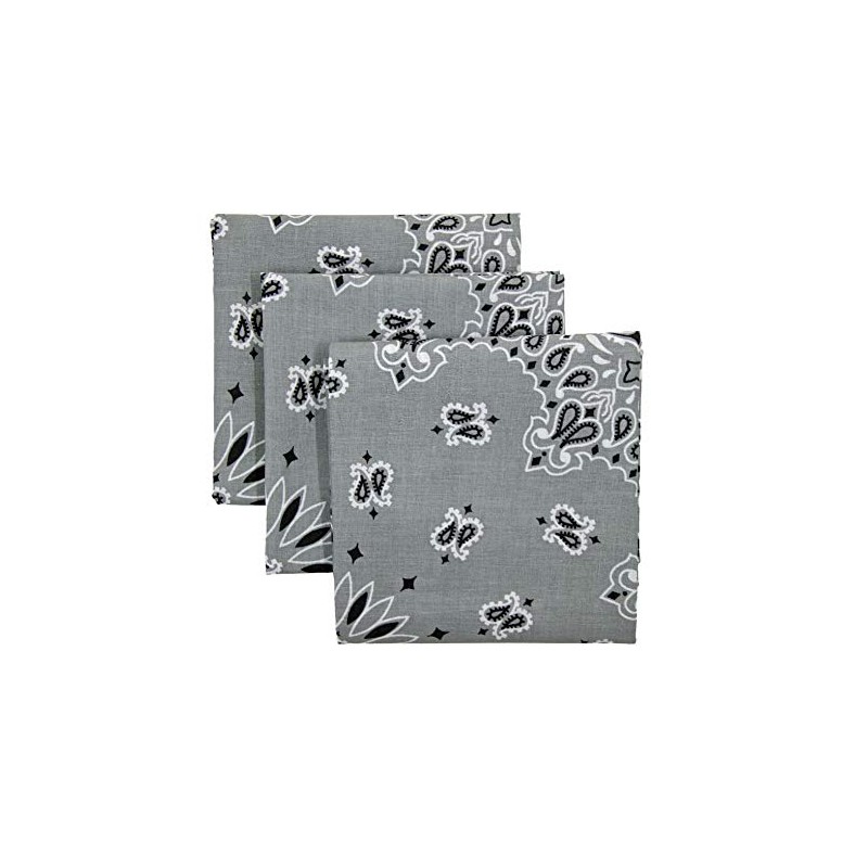 American Heritage Cotton Bandanas - Made in USA - Sold by Vets - Pack of 3 (Light Grey)