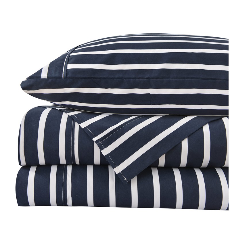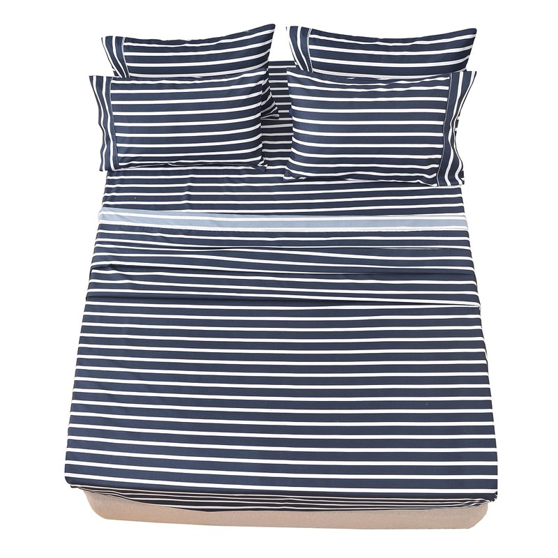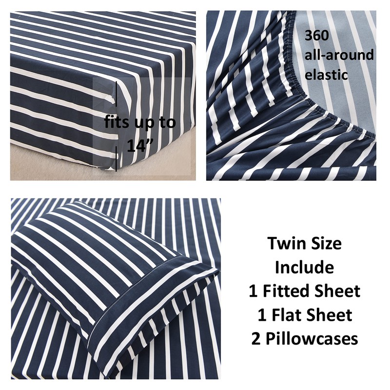 American Home Collection 4 Piece Print Bedding Sheets & Pillowcases Set Brushed Microfiber Wrinkle Free 14 Inches Deep Pocket Dark Blue Patterned Sheets (Twin, Navy Stripe)