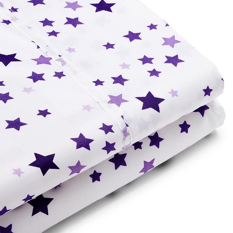 American Home Collection 4 Pieces Printed Bed Sheet Set Brushed Microfiber Wrinkle Free 14 Inches Deep Pocket Patterned Sheets (Twin, Purple Stars)