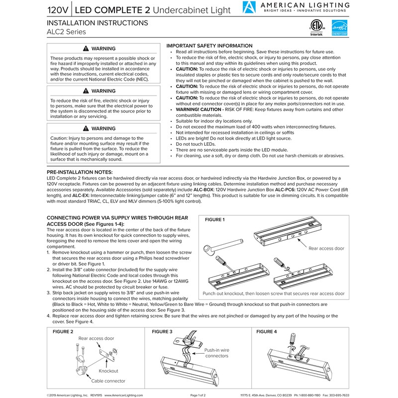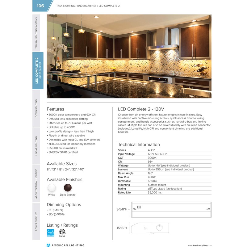 • 120V AC, 60Hz Operation Direct Wire Junction Box for LED Complete Series. Suitable for Under Cabinet Installations