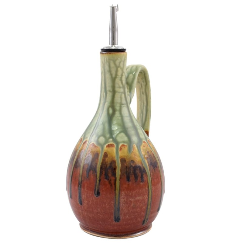- Stoneware oil cruet is shaped from clay and high-fired for a durable, food-safe finish; holds between 24 to 30 fluid ounces of your favorite oil, vinegar, sauce, or dressing