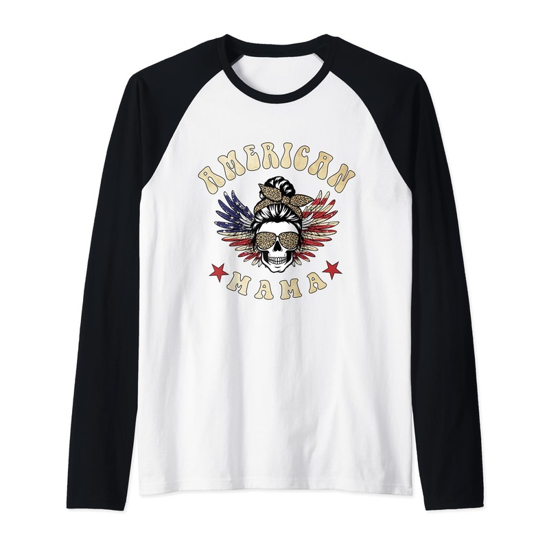 American mama, vintage leopard print 4th of july apparel Raglan Baseball Tee