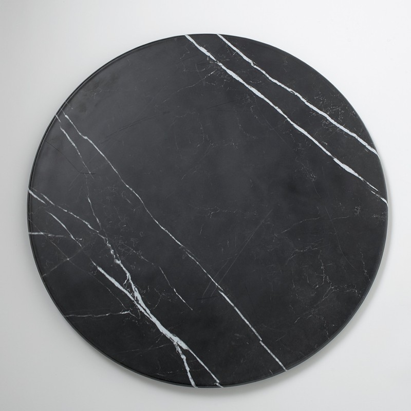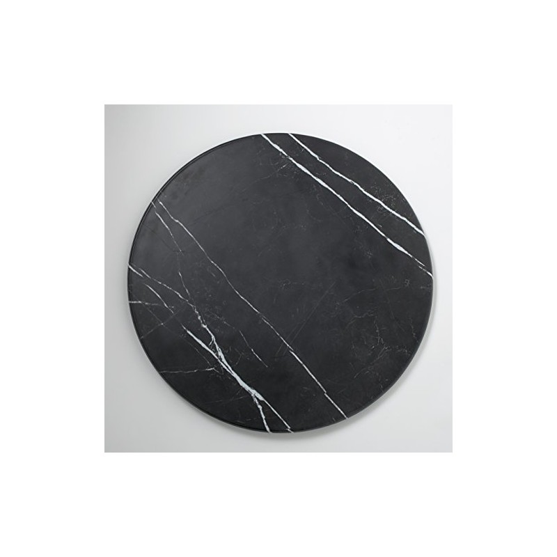 The American Metalcraft MB21 Melamine Round Serving Board, at a first glance, looks like a beautiful stone and wood serving piece. And while it still is incredibly ideal for serving a variety of snacks, meals, and even hors d'oeuvres, it can be seen upon closer examination that it is made of neither stone nor wood, but versatile melamine! Strong and easily washable, this product has the look of marble with the true durability of melamine. This serving board has a unique concave shape with feet on the bottom that lifts the serving board off the counter or table tops and provides stability. This black serving board has a round shape and a 21 1/2-inch diameter. With 70 years of service, American Metalcraft is a leader in the foodservice industry for trend-focused and unique products.