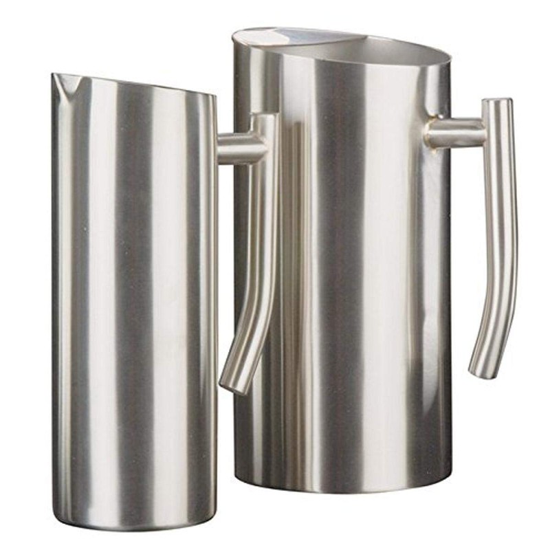 - Steel pitcher keeps beverages cold while serving