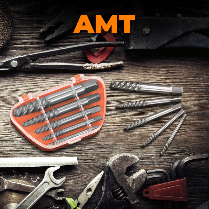 AMERICAN MUTT TOOLS 5pc Spiral Screw Extractor Set – Cr-Mo Bolt Extractor Kit – Easy Out Bolt Extractor Set, Stripped Screw Extractor, Easy Out Screw Extractor Set, Ez Out, Broken Bolt Extractor Kit
