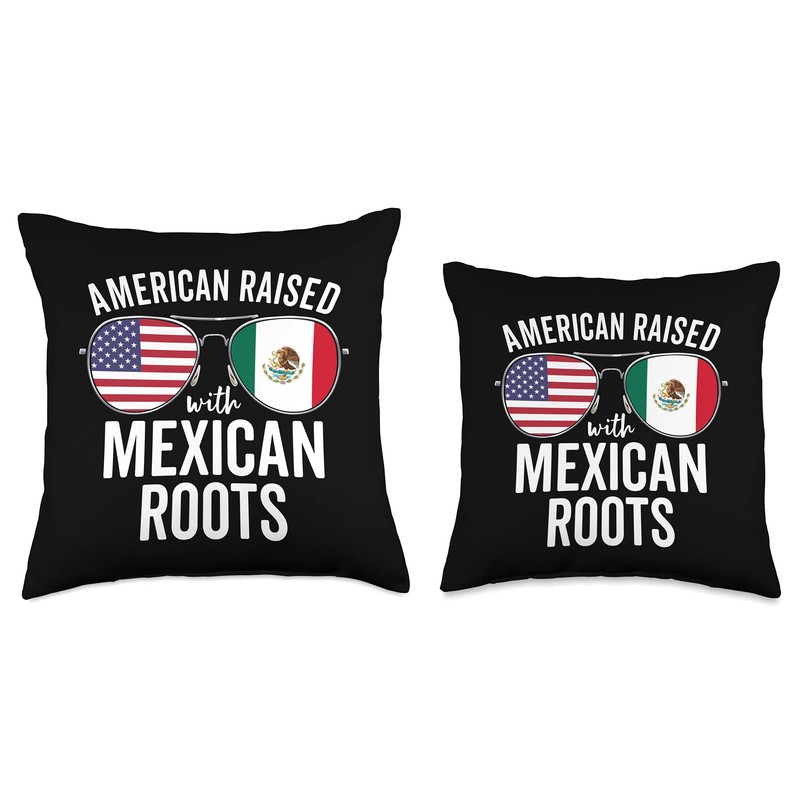 American Raised With Mexican Roots USA Mexico Flag Throw Pillow