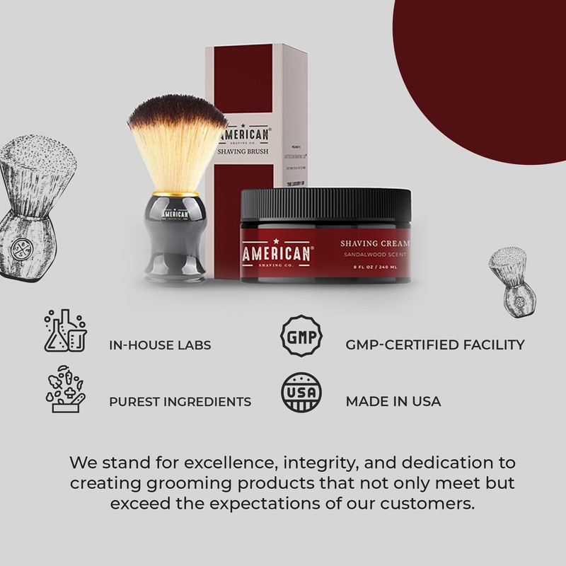 American Shaving Co. Sandalwood Shaving Cream For Men With Shaving Brush 8 oz, Made in USA, Easy Application, Quality Potent Ingredients, Non-GMO, GMP Certified, Cruelty-Free Products