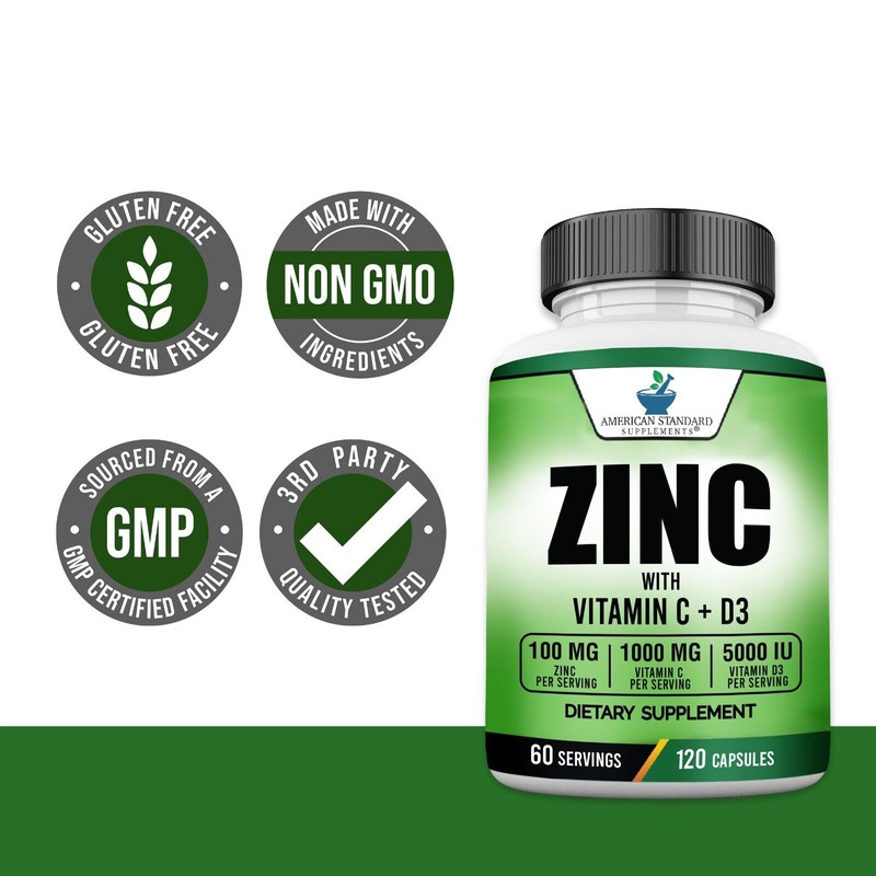 American Standard Supplements Zinc 100mg, Vitamin C 1000mg, Vitamin D3 5000IU...