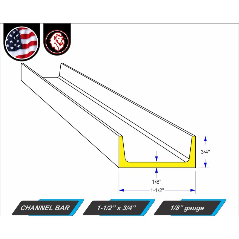 American Steel (X2) 1-1/2" x 3/4" Channel Bar - 1/8" gauge - Mild Steel - 96" inch Long (8-ft)
