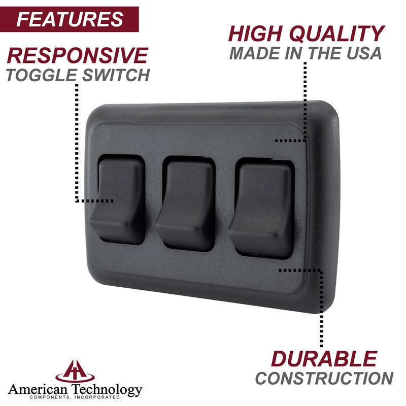American Technology Components Triple SPST On-Off Switch with Bezel, 12-Volt, for RV, Trailer, Camper (Black)