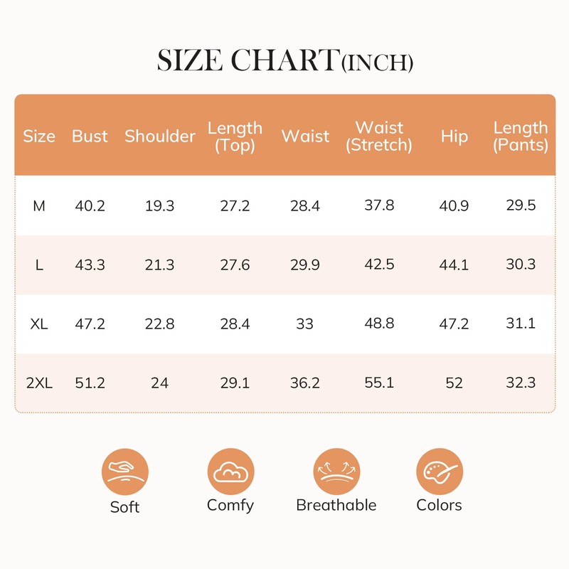 - Size: The lounge sets for women is available in M-2XL sizes. The fabrics have some elasticity, we also do the loose design, so it can be suitable for different body types. You can choose your own size according to our size chart.