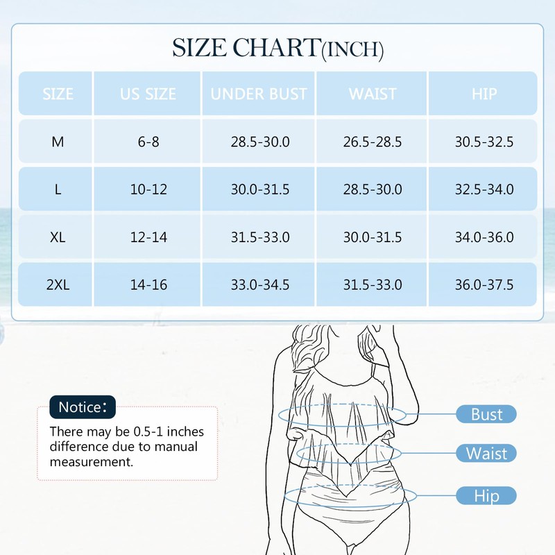- 【Size】Our tankini swimsuits are available in a variety of sizes and there is always one that suits you. Before ordering, please pay attention to the size chart and choose the swimsuits for women 2 piece in right size that suits you. Our sizes are compared as follows: M(6-8)L(10-12), XL(12-14), 2XL(14-16).