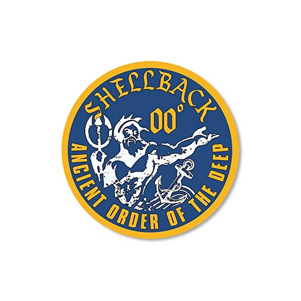 American Vinyl Round Yellow & Blue Shellback Ancient Order Sticker (Logo Navy Naval pollywogs Neptune 00 Degrees)