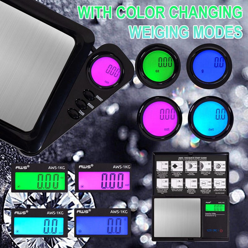 - PRECISE MEASUREMENT: The AWS-2-IN-1 GIFT SET has a capacity of 1000g x 0.1 per scale offering accuracy and precision with every weigh. Tried and true measuring while offering a modern and easy to use scale. Our scale offers all weighing units in a rainbow of color changing modes to be ever so easy on the eyes even in dim lighting. OVER 20 YEARS of experience in manufacturing the most reliable scales on the market.