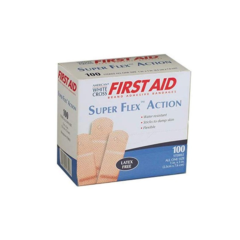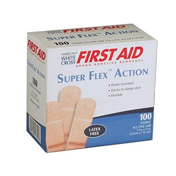 American White Cross Super Flex Action Strip Bandages, 3/4" x 3", Box of 100