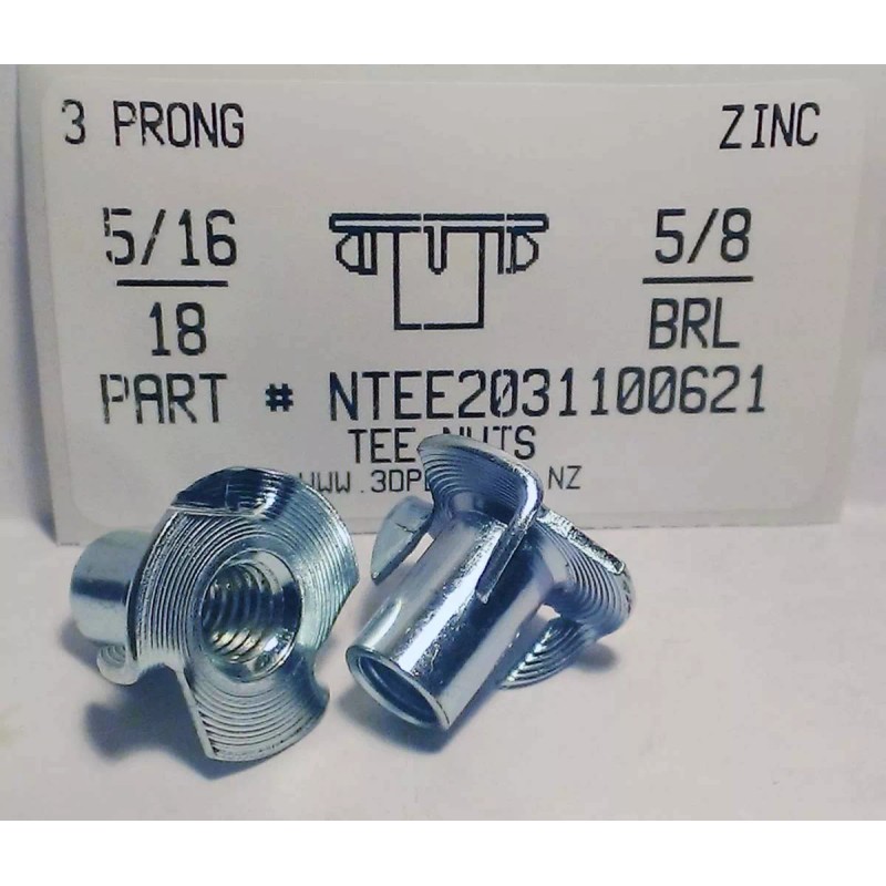AmericanIntegratedSupply.com 5/16-18 T-Nuts 5/8 Barrel 3 Prong Steel Zinc Plated (20)