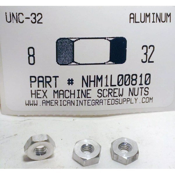 AMERICANINTEGRATEDSUPPLY.COM #8-32 Hex Machine Screw Nuts 6061T6 Aluminum (50)
