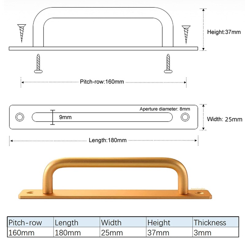- ✔Stylish Design--This door pull is with quality Aluminum alloy construction and anti-rust, anti-corrosion, anti-deformation. Good choice for easy installation and Disassemble. It features an oval handle and Pre-punched mounting holes.