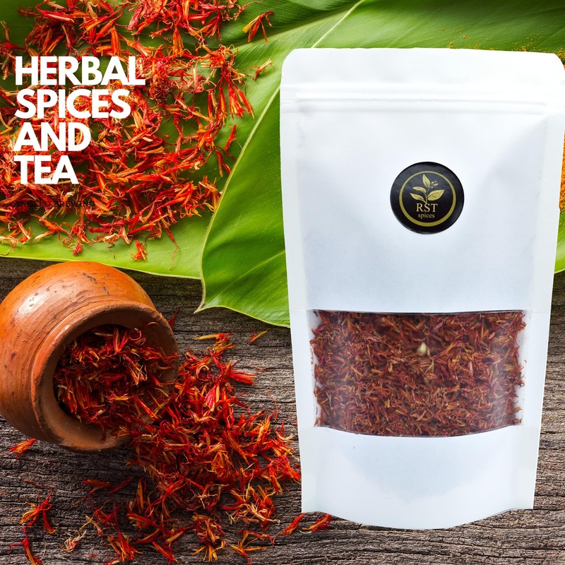 - 28 grams of dried American saffron from Northern Thailand. Suitable for making American saffron herbal tea and as a condiment.