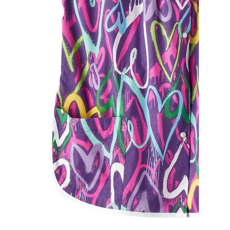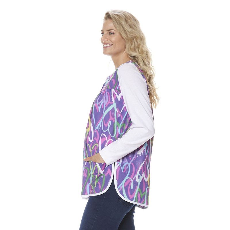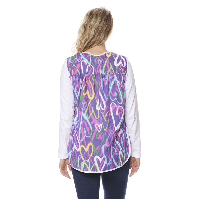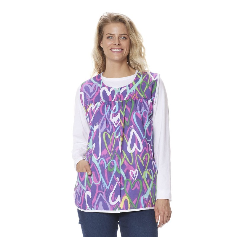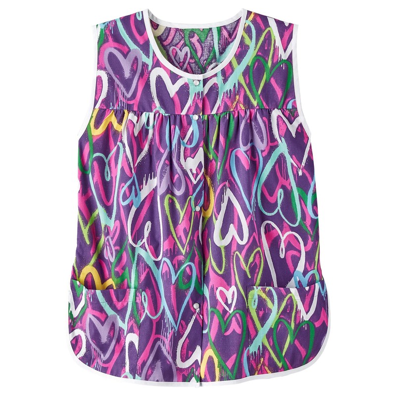 AmeriMark Easy-Care Snap Front Cobbler Aprons Vest with Two Patch Pockets Pink Hearts Large