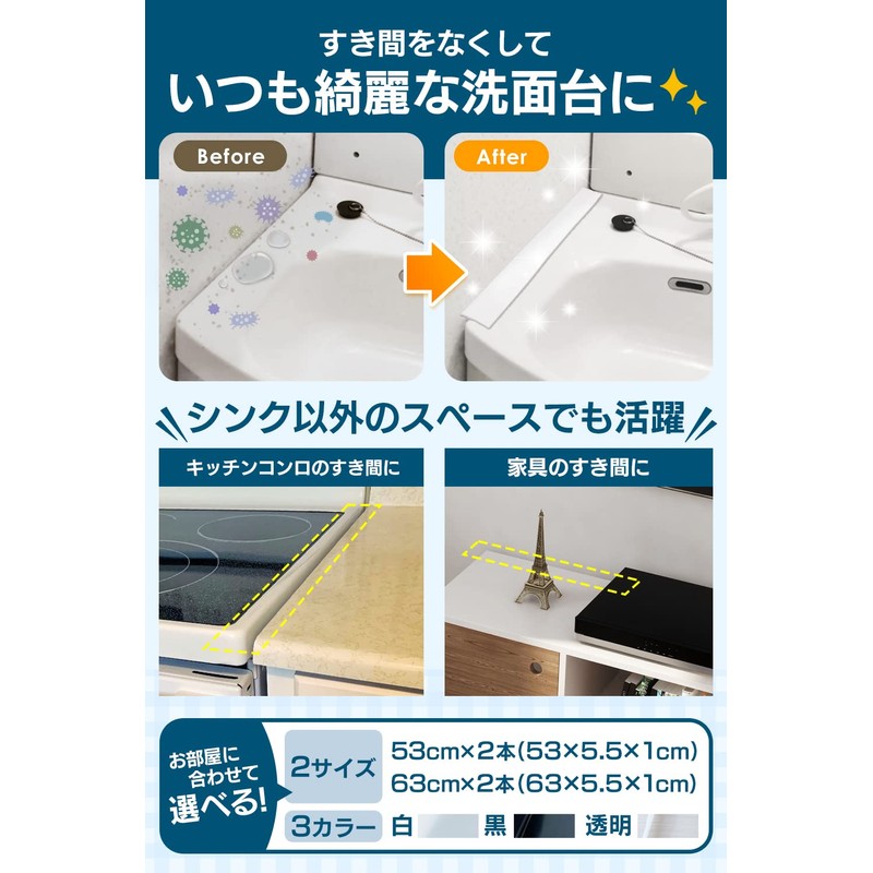 - (Suitable for Bathrooms and Stovetops) Gap washer is not only used for washbasins, but also for gaps between bathrooms, stoves, toilets, furniture, etc., and can also be used to prevent dirt and small items from falling out