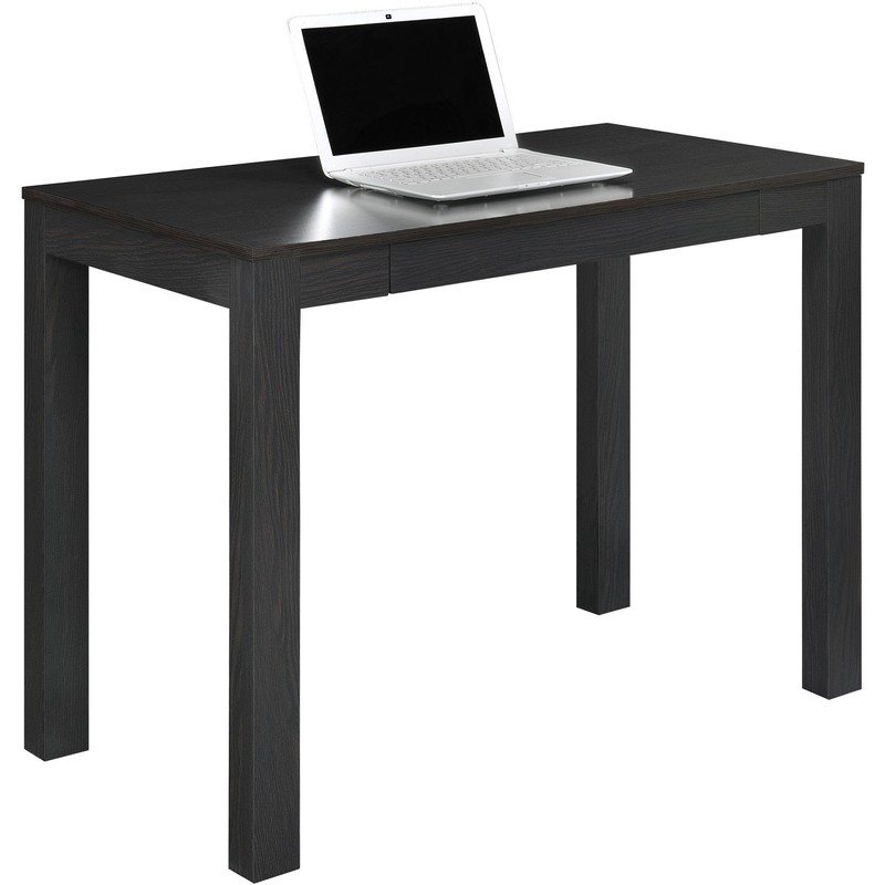 Redefine your workspace or any room in your home with the sleek, minimalist lines of this attractive Ameriwood Home Parsons Desk with Drawer. This Desk is designed with classic parsons styling that includes a simple silhouette with clean lines. The Desk features a small center storage drawer that’s perfect for pens, paper, computer peripherals and other small office supplies. The Desk also works great as a side table in your living room. This compact 30”h x 39”w x 19.7”d Desk is conveniently sized to fit in any room. The beautiful espresso finish looks right at home with dark bold colors or it can be paired with neutrals for a subtle look. Don’t let your workspace suffer when you have nice, affordable options with this laminated particleboard and MDF desk. Parsons Desk with Drawer comes partially assembled and is recommended to have 2 people for assembly.