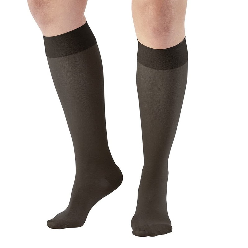 - [Fashionable] Semi-transparent design is perfect for hiding blemishes and sheer enough to resemble traditional hosiery, so no one will know you’re wearing graduated compression. The reinforced built-in heel and top pockets add durability and ensure proper placement. The two-way stretch provides extra comfort while the comfort top-band keeps these knee-highs in place.