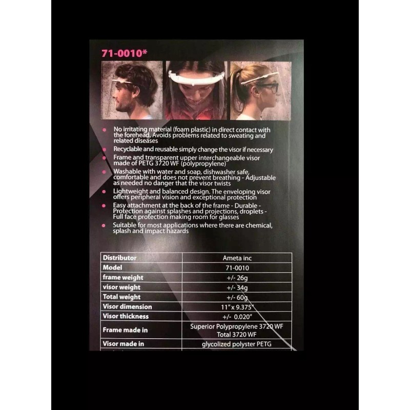 Proudly designed and manufactured in Quebec, Canada, this FPE (Facial Protection Equipment) will meet all your needs.