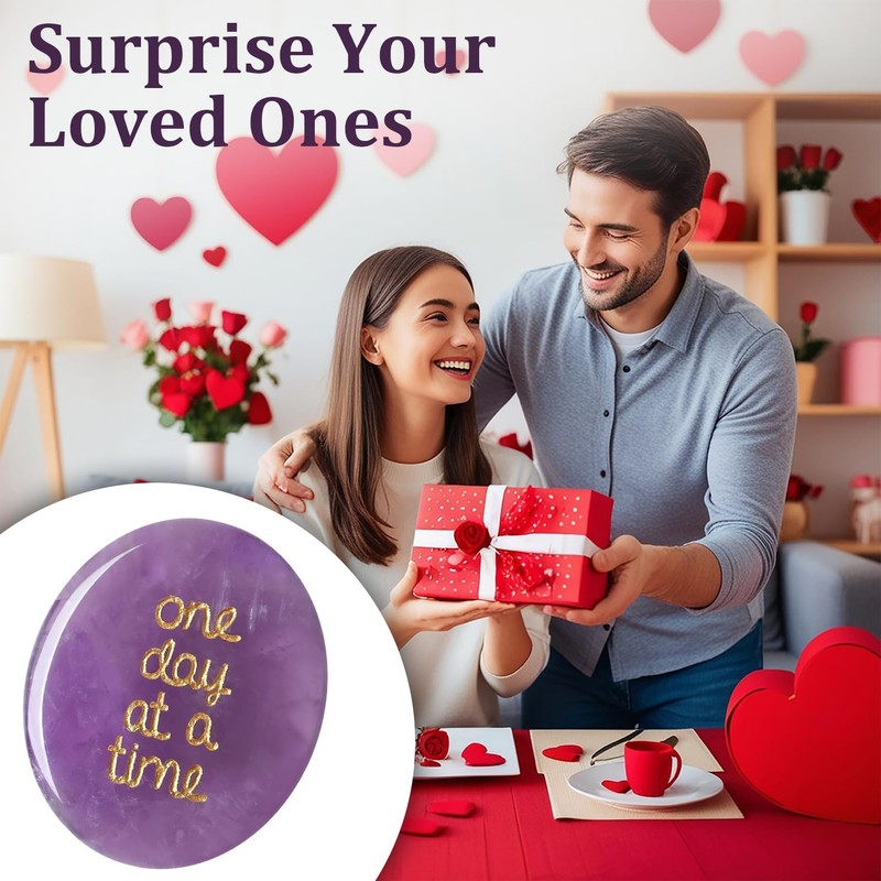 Amethyst Crystal Healing Crystal,Nature Gemstone One Day At A Time, Natural Crystal Oval Palm Stone, Pocket Worry Stone Crystal For For Anxiety Relief, Stress Relief, Balancing, Meditation Accessories