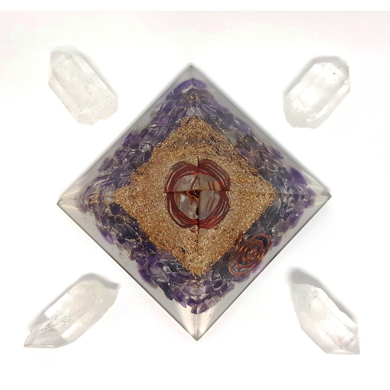 - ORGONE CRYSTAL PYRAMID - Amethyst stones align with the Third Eye Chakra and the perfect meditation companion to foster peace, balance, and serenity