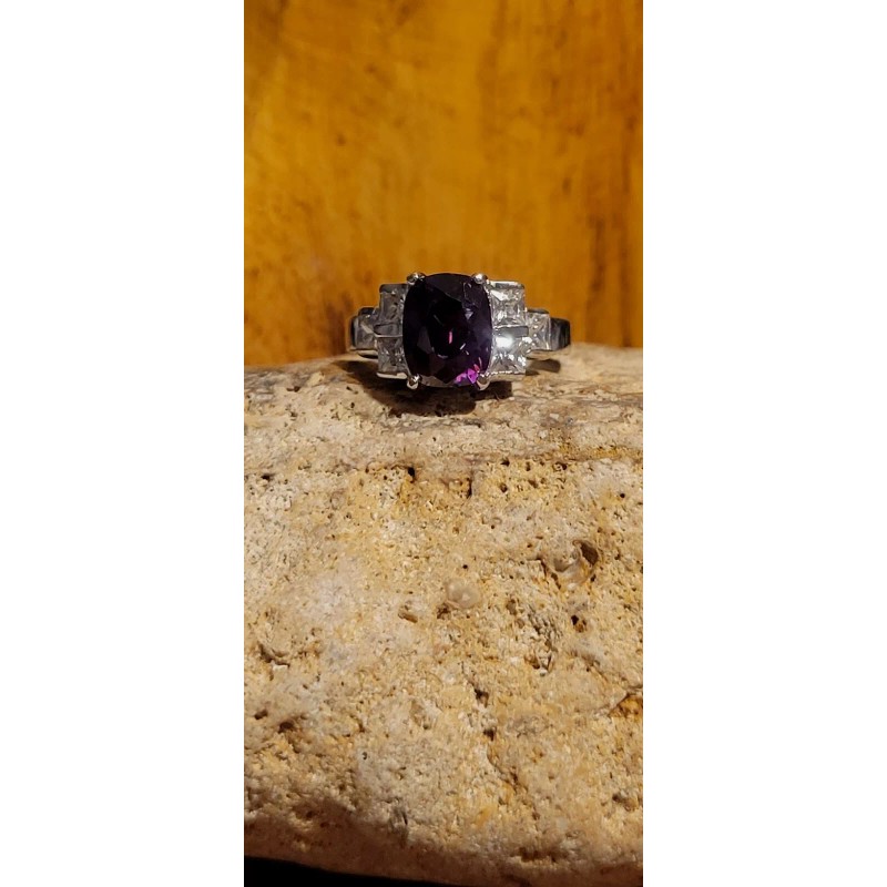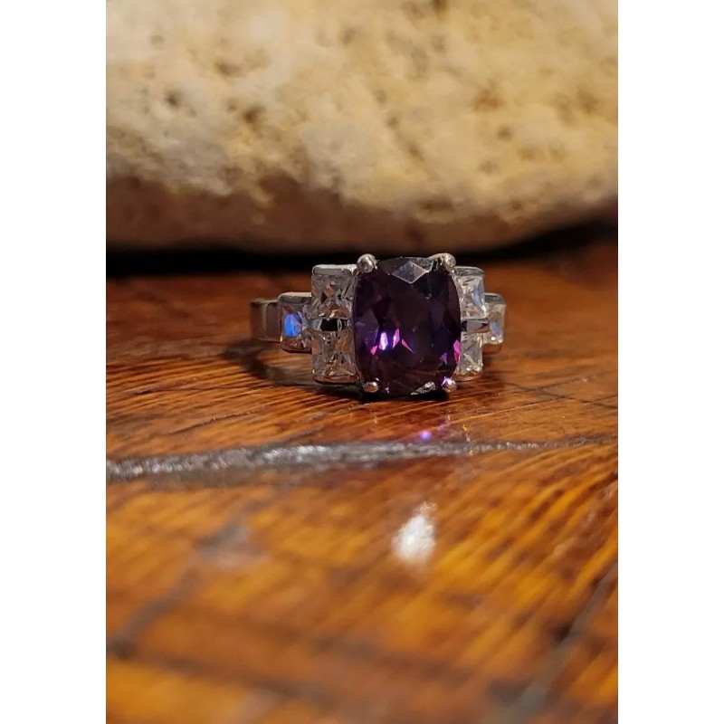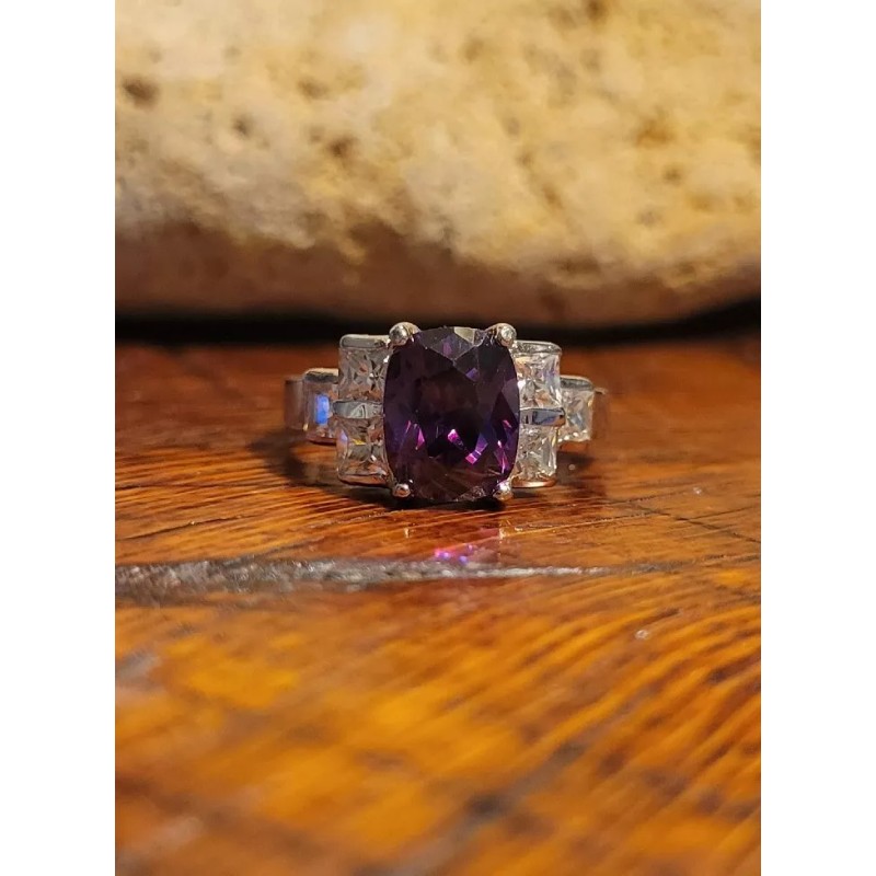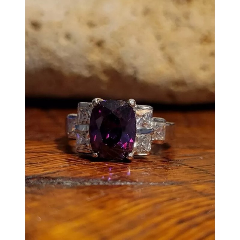 Amethyst Cushion Cut Lab Created Amethyst Cocktail Ring CZ Accents Stunning Size 5