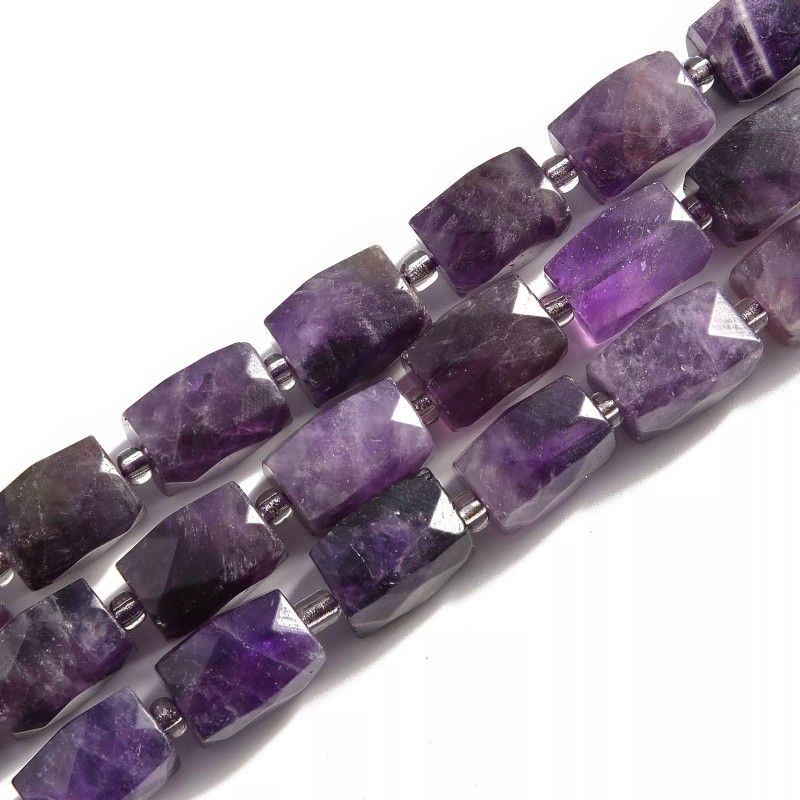 Amethyst Faceted Rectangle Cylinder Drum Barrel Beads 12x16mm 15.5" Strand