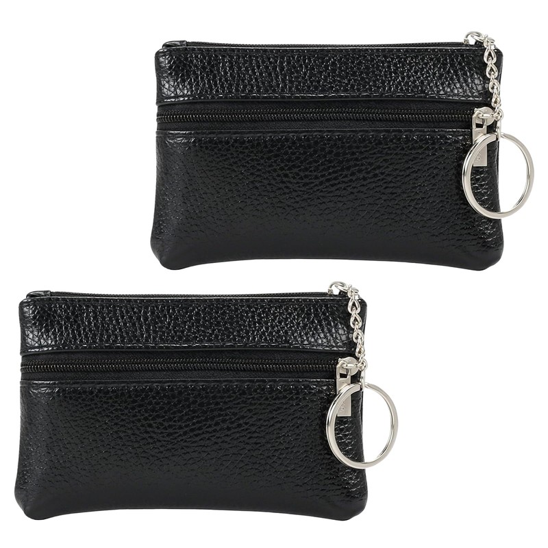 Amexo Pack of 2 Small Coin Purses Made of PU Leather Mini Purse Women's Coin Bag with Zip Mini Purse with Key Ring Leather Wallet with Three Compartments, black, PU leather portable wallet