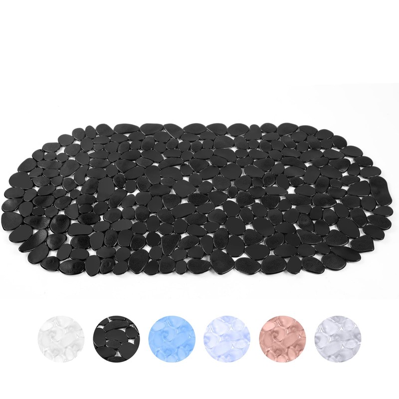 AMFUN Shower Mat Non Slip Anti Mould, Pebbles Shower Bath Mat, Oval Shower Mats Pads Trays, Machine Washable Bath Mat with Strong Suction Cups Grip and Drain Holes for Inside Shower