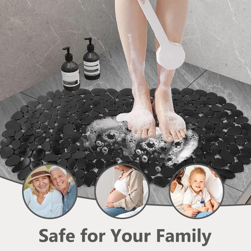 - 💦【Quick Drainage】The irregular pebble shape of the shower mat forms drainage holes, allowing water, soap foam and shampoo to flow away easily, preventing the mat from getting soaked. This feature prevents water accumulation, allowing the shower mat to dry quickly and stay clean.