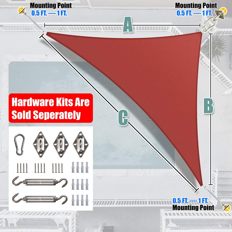- Wildly Uses: with the proper hardware kits, sun shade sails can be attached to almost any structure such as poles, trees, wall, roof, etc. Applied for the patio, carport, pergola, tent, pool, yard, even window