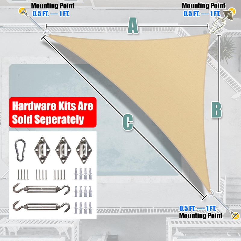 - 【Easy & Flexible Installation】: Effortlessly install our shade sail by determining the area, selecting the shape, and securely attaching it to trees, roofs, walls, or other surfaces using mounting hardware kits. For optimal performance, ensure that each corner has a gap of at least 0.5 ft between D-Rings and poles, or reduce by 1 to 1.5 ft for each side.