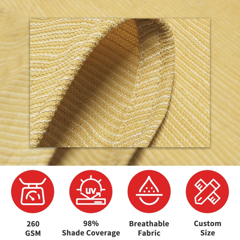 - ★【VIRGIN, UV STABLIZED COMPOUND & THICK MATERIAL】: The only sun shade sail on the market that are made of 260 GSM 100% virgin (Non-recycled) HDPE material. Our virgin HDPE fabric went through 20000 hours of laboratory UV testing and it is proved to be 70% more durable compared to recycled HDPE under sun exposure, fabric has been treated with UV stabilized compound, preventing shade sails from dried out, tearing and fading, significantly extend the lifespan.