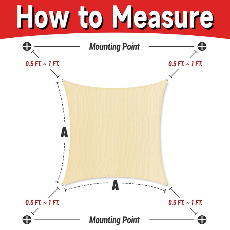 - ★【MEASUREMENT & WARRANTY】: Measurement is taken from D ring to D ring, leave 0.5 - 1.5 foot space for the hardware kit between each shade sail D ring and the mounting points, all edges are finished slightly curved so it can be stretched tightly, prevent middle from sagging, shade sails come with 5 years full warranty, under normal weather and usage. Your 100% satisfaction is our goal.