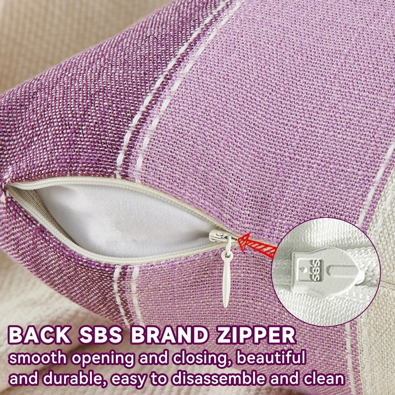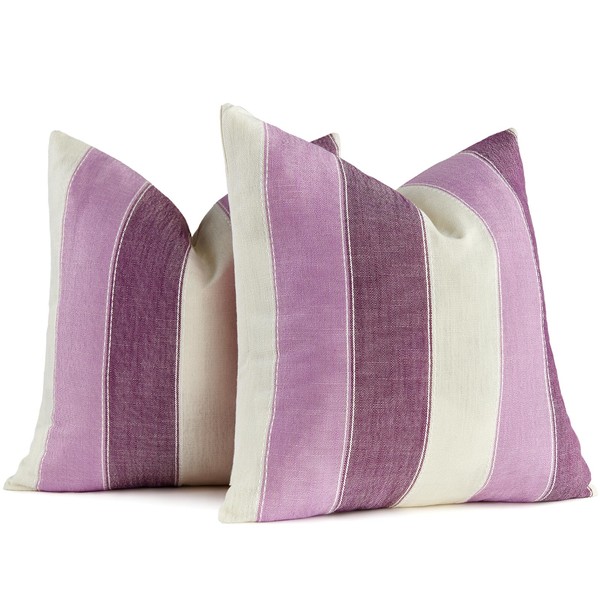 AmHoo Pack of 2 Farmhouse Stripe Check Throw Pillow Covers Set Case Cotton Linen Decorative Pillowcases Cushion Cover for Couch Bench Sofa 18x18 Inch Purple