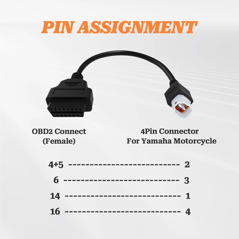 - ADAPTER FUNCTION: This obdii motorcycle diagnostic cable converts Yamaha's 4-pin diagnostic port to standard 16-pin OBD2 port, enabling comprehensive diagnostics.