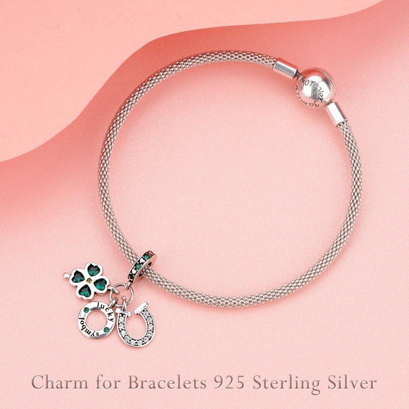 Amieween 925 Sterling Silver Charm Bead Lucky Clover Pendant Compatible With Women'S Bracelets, Necklaces, Birthday Gifts